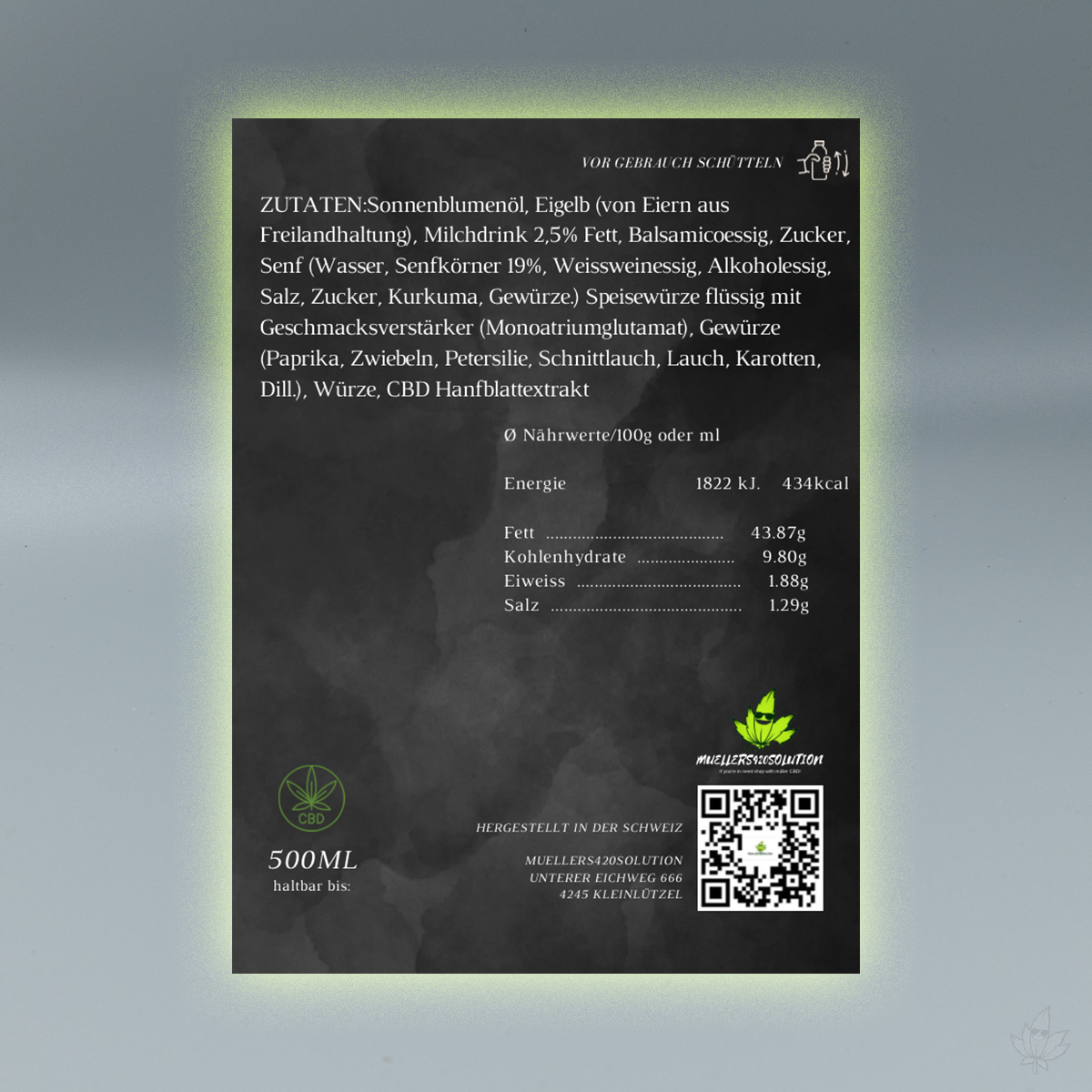 Das Besondere? Wir haben unserer Salatsauce einen Hauch von CBD-Hanfblattextrakt hinzugefügt – für eine entspannende, gesunde Komponente, die weit über den reinen Genuss hinausgeht. Diese einzigartige Mischung sorgt nicht nur für ein leicht süßliches Aroma, das deine Geschmacksknospen tanzen lässt, sondern bringt auch das Beste der Hanfpflanze in deine Küche.